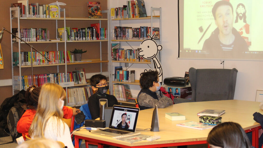 Donnerstag, den 9. Februar 2023: Da in unserer Schulbibliothek Dreharbeiten zum Thema Computerspielsucht stattfanden, trafen wir uns mit den IVK-Klassen in dem Klassenraum…