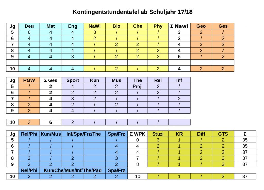 In der Regel müssen nach dieser neuen behördlichen Vorgabe in den Fachbereichen weniger Stunden als Mindestauflagen unterrichtet werden, lediglich im Fachbereich Religion/Philosophie müssen nach einer staatsvertraglichen Übereinkunft mit den Kirchen zwei Stunden mehr als früher in der Mittelstufe unterrichtet werden. Der Mindestsaldo von 197 darf allerdings nicht unterschritten werden – Kürzungen in einem Fachbereich ermöglichen also Erhöhungen in einem anderen.