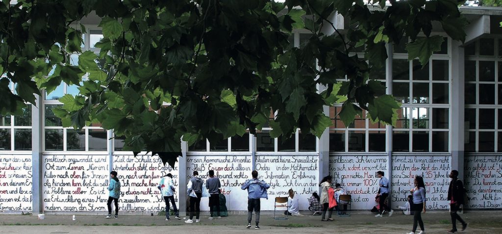Wichtiges Anliegen unseres Kunstunterrichts ist es, den künstlerischen Blick nach außen zu öffnen. Zum Beispiel die Wahrnehmung des Hamburger Kunstlebens durch Ausstellungsbesuche in die Kunsthalle, die Deichtorhallen, das Bucerius Kunstforum oder die Sammlung Falckenberg in Harburg. Aber auch die Präsentation der Schülerarbeiten durch wechselnde Ausstellungen innerhalb des Schulgebäudes, im Landesinstitut, in Lurup oder außerhalb des Stadtteils bei der Teilnahme an Wettbewerben etc. sind wichtige Bestandteile unseres Kunstunterrichts.