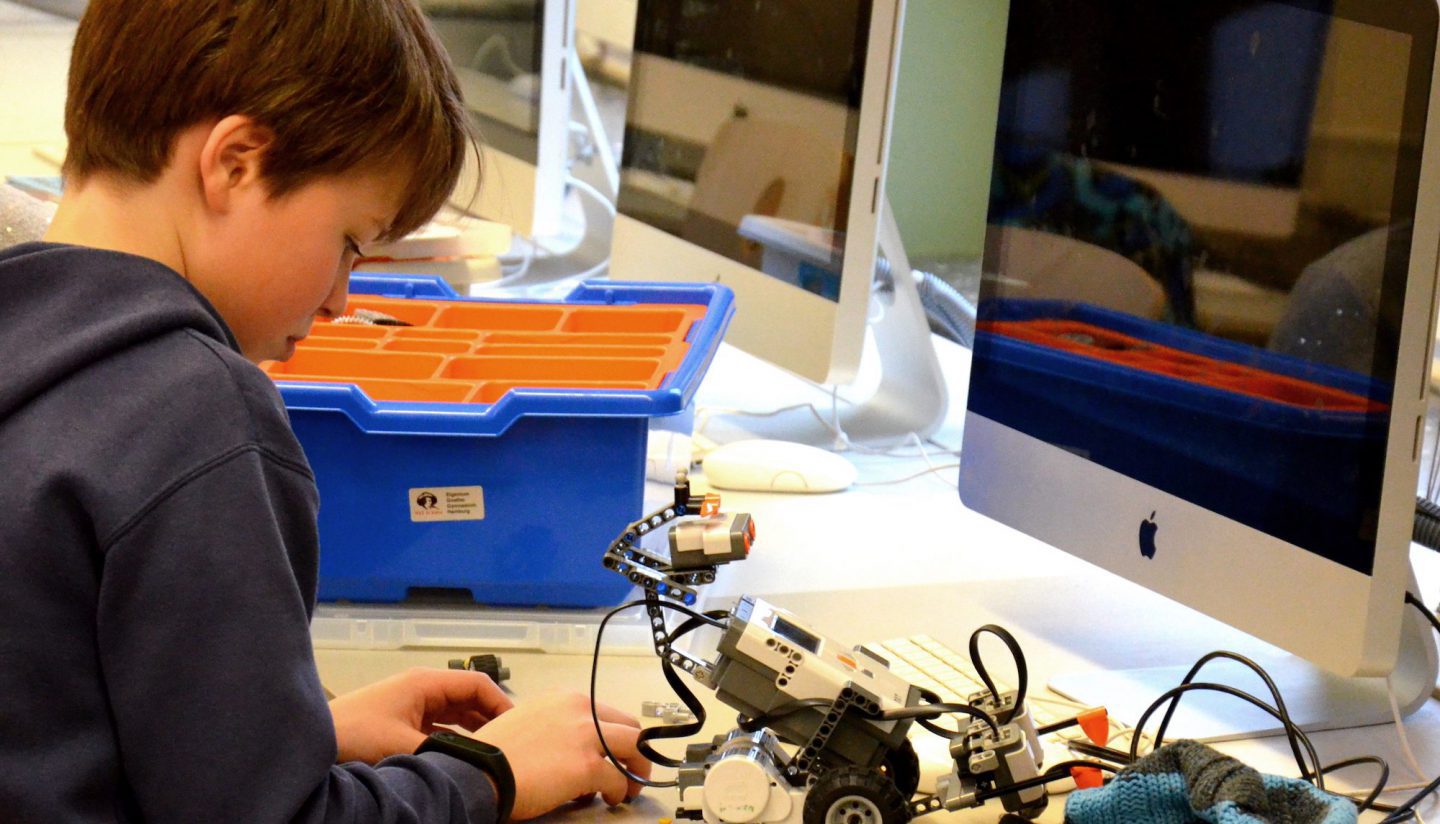 Um der Bedeutung informationstechnischer Bildung Gewicht zu verleihen, wird das Fach Informatik in Klasse 7 verpflichtend für alle Klassen unterrichtet. Ab Klasse 8 ist es jedes Jahr bis zum Abitur wählbar. Für diese Zahl an Kursen stehen neben zwei Computerräumen noch drei ausleihbare Computerwagen mit MacBooks zur Verfügung. Um die Arbeit in Freistunden oder längeren Pausen ebenfalls für digitale Arbeiten zu nutzen, ist unsere Bibliothek zusätzlich mit 16 Geräten ausgestattet, die jederzeit genutzt werden können.